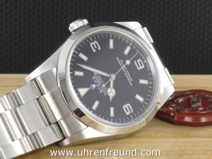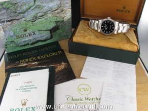 Rolex Explorer I Ref. 114270 aus 2002 mit Verkaufsdatum 17.03.2002. Das Gehäuse und Band befinden sich in sehr gutem Zustand und weisen nahezu keine Gebrauchsspuren auf. Die Uhr kann als neuwertig bezeichnet werden. Das Uhrwerk ist überholt, kontrolliert und läuft einwandfrei. Die Lieferung erfolgt incl. Box, Originalzertifikat, Anleitungen und Rechnung von Classic Watches sowie CW - Garantiezertifikat.